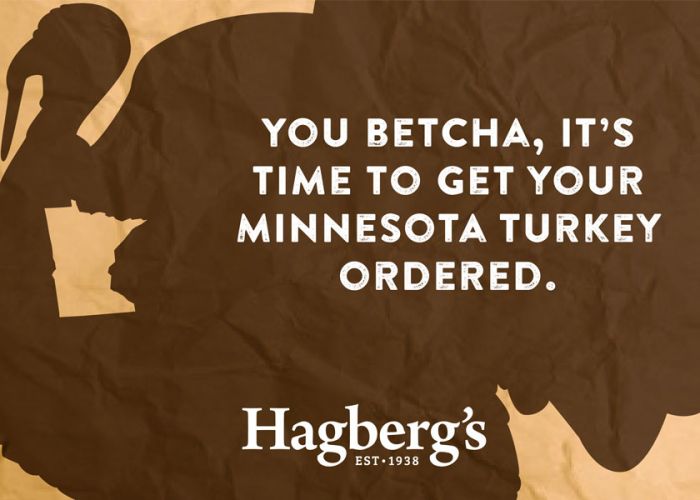 Uff-Da U-Betcha Dontcha-know Minnesota Turkeys Are Better. Don’t chance it with a typical grocery-store bird on the big day. Order your fresh Minnesota turkey from Hagbeg’s. We’re taking orders for f…