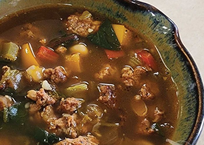 The name of this soup sort of says it all. But in case you’re wondering, in addition to the butter beans, great northern beans, and Hagberg’s Mexican Chorizo, this protein-packed recipe also includes…