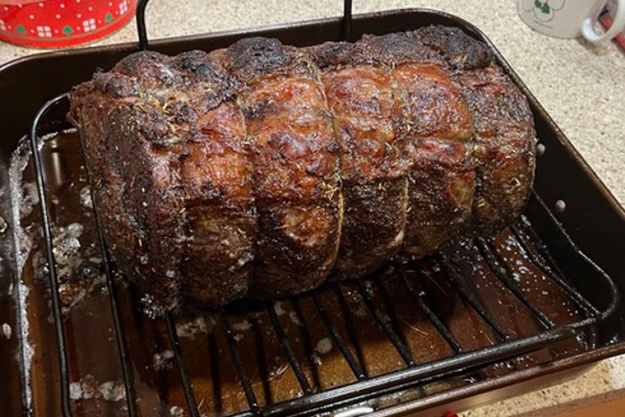 I followed Chef Jean Pierre’s instructions, but I hedged my bet by using the Meater Bluetooth thermometer to measure the temperature of this cook. Our prime rib was a five-bone roast weighing 11 pounds. This was to be served to nine people at Christmas dinner. I felt considerable pressure to not screw this up.